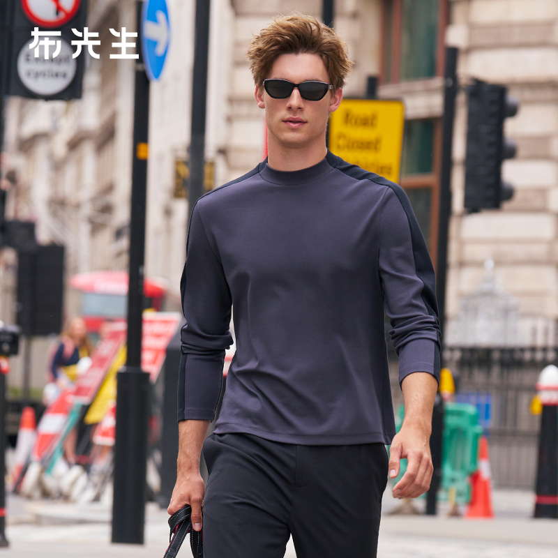 MrBu布先生撞色拼接小高领长袖t恤男2025秋冬款运动打底衫PT16750