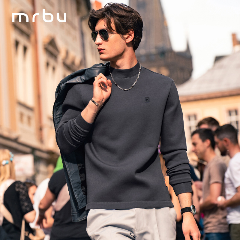 MrBu布先生撞色小高领打底衫2025秋冬新款字母印花上衣男PT16751