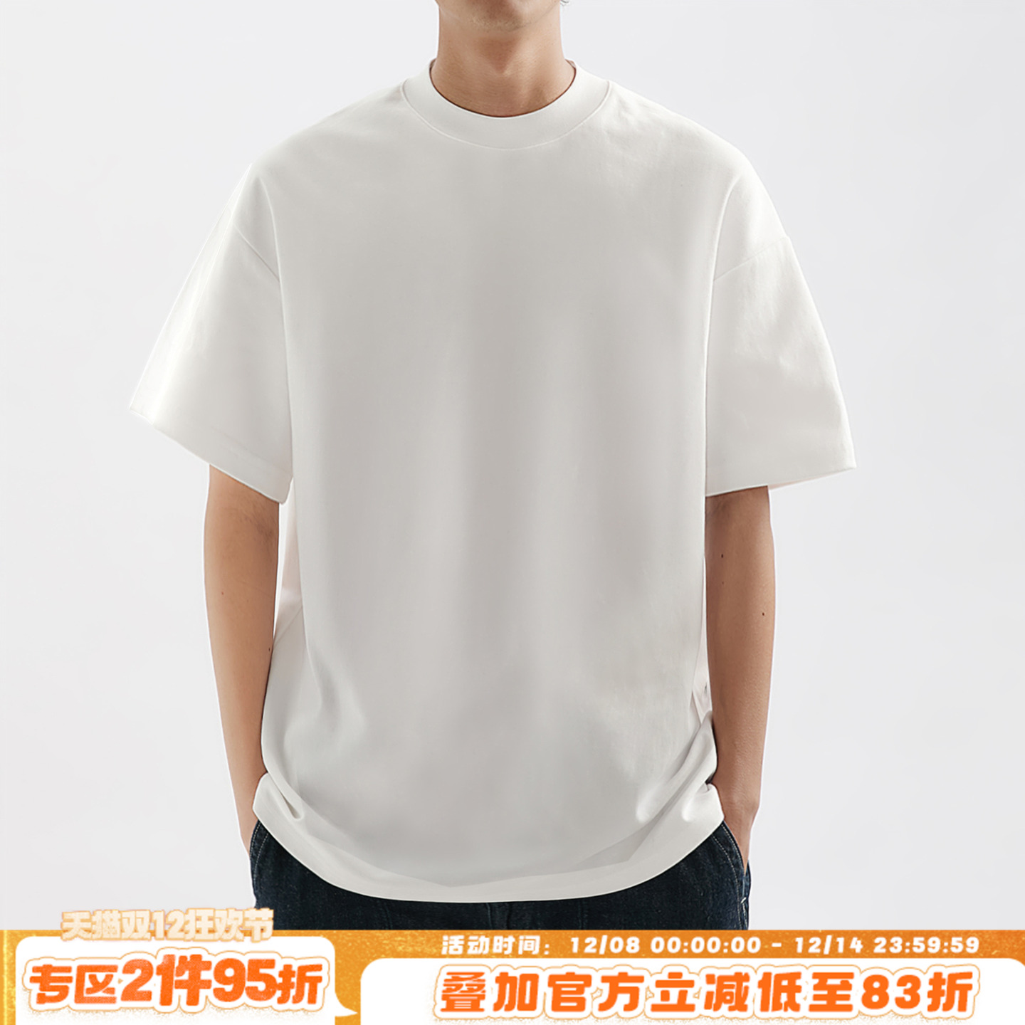 嘿马七作小领口300g重磅半高领日系男短袖T恤潮夏半袖打底衫情侣
