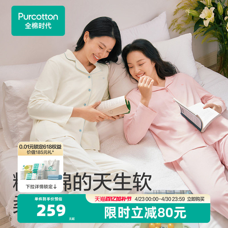 全棉时代水光棉家居服纯棉睡衣套装春秋男女情侣睡衣纯棉长袖长裤