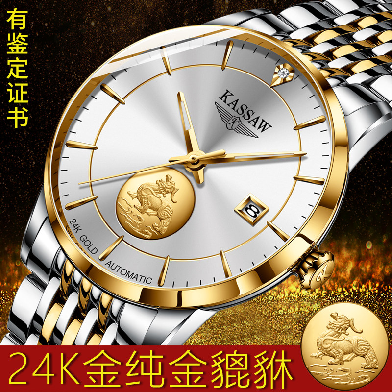 瑞士黑色机械表黄金金表男悟空卡梭手表十大防水品牌夜光男表K666