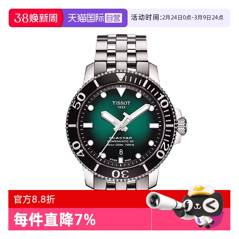 【自营】Tissot天梭海星系列男士自动机械表手表夜光男表潜水表