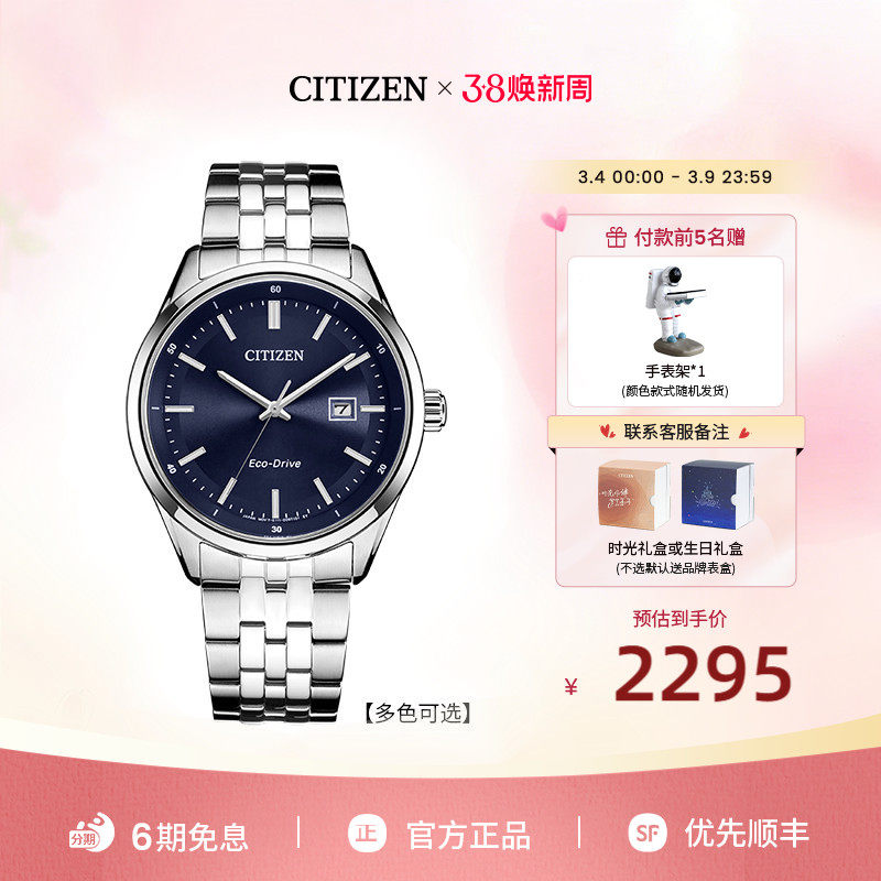 【热销爆款】西铁城官方光动能钢带商务休闲防水夜光男表BM7560