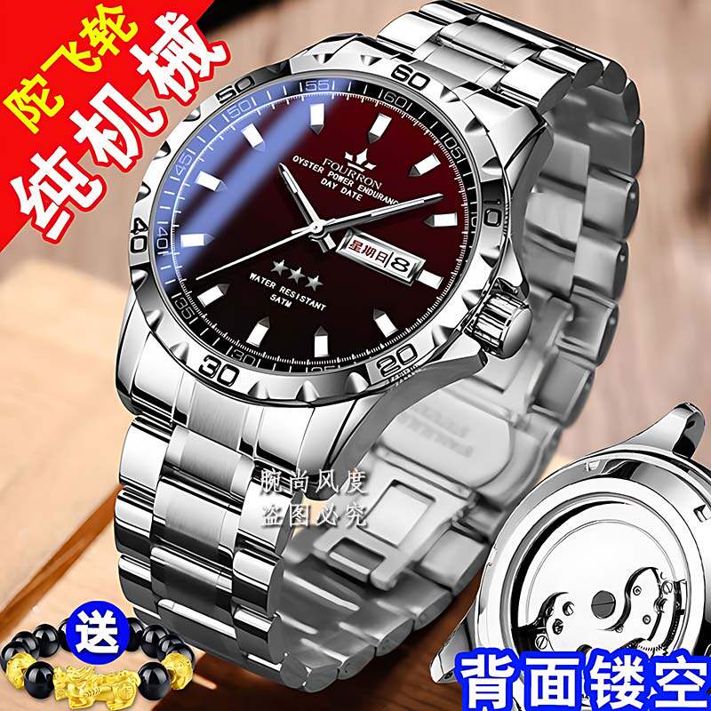 2025新款夜光防水男士日历手表全自动机芯表潮流品牌精钢带男表