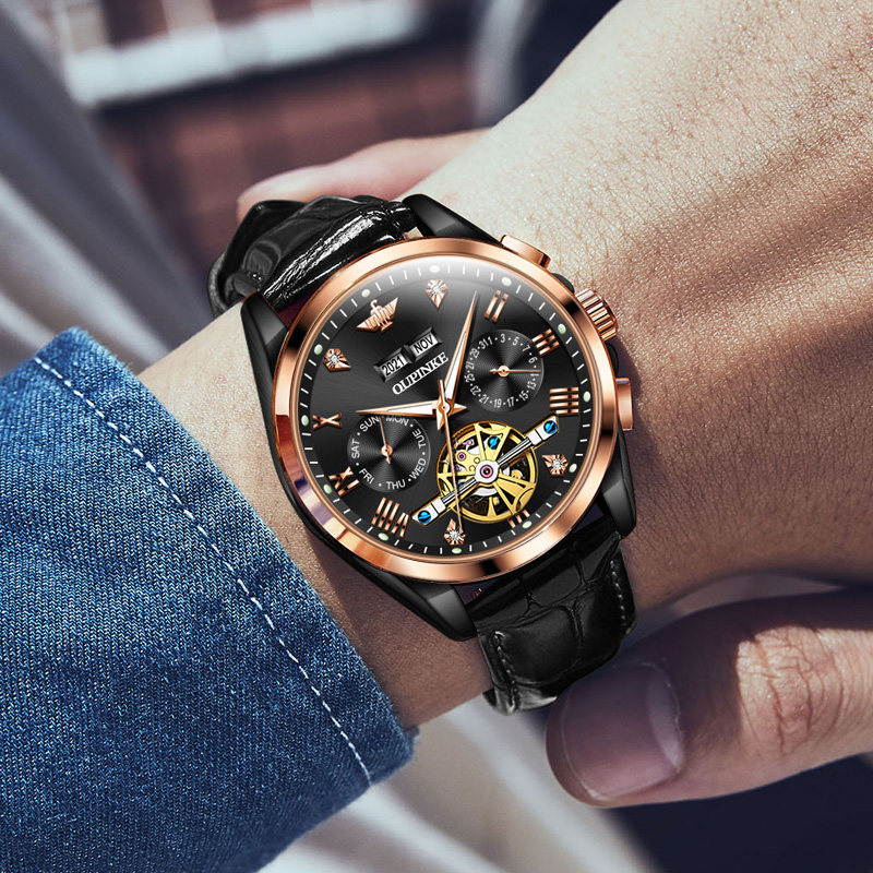 欧利时2024新款手表镂空多功能机械表男士商务正品夜光男表7013