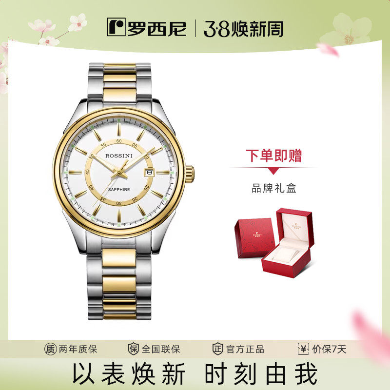 【AU999花钉】罗西尼手表男钨钢系列时尚机械表100米防水夜光男表