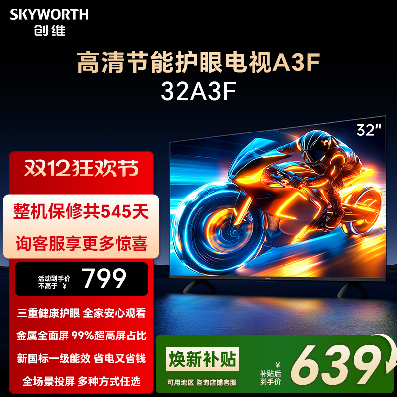 创维A3F 32英寸三重硬件护眼卧室老人电视机液晶屏幕官方官旗舰店