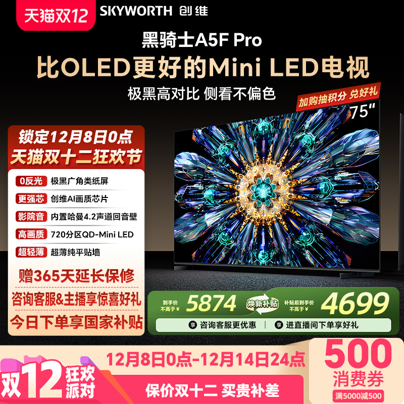 创维电视A5F Pro 75英寸 MiniLED电视机 A5D Pro升级款 换新补贴