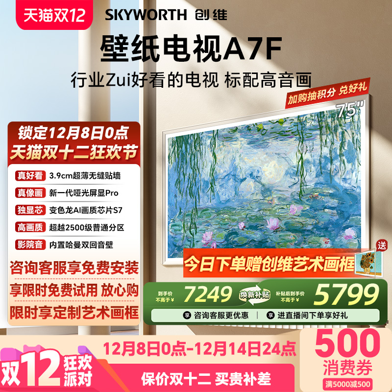 创维壁纸电视A7F Pro 75英寸超薄壁画艺术Mini LED电视机换新补贴