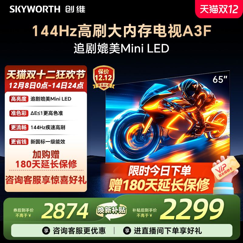 创维电视65A3F 65英寸 144Hz高刷大内存电视机 以旧换新补贴 官方