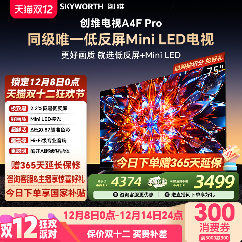 创维A6F Pro + 75英寸Mini LED内置回音壁液晶电视机 焕新补贴