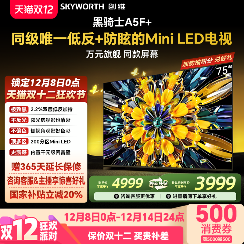 创维黑骑士75A5F+ 75英寸 Mini LED电视机 以旧换新补贴 官方旗舰