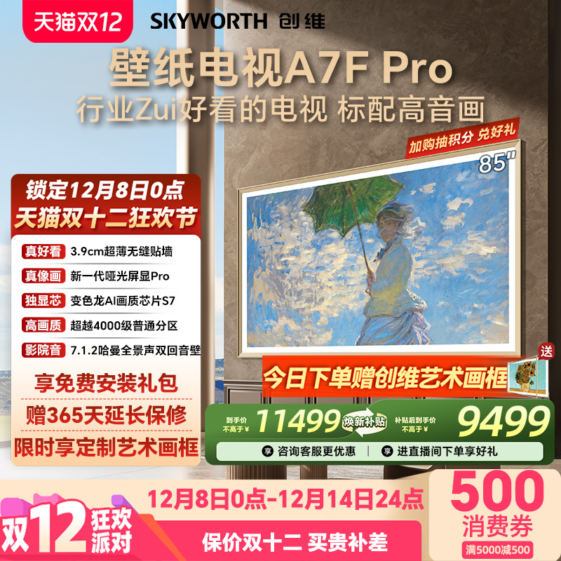 创维壁纸电视A7F Pro 85英寸超薄壁画艺术Mini LED电视机换新补贴