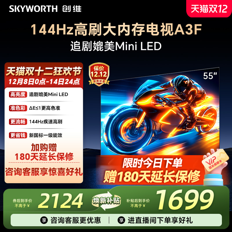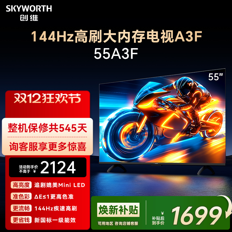 创维电视55A3F 55英寸144Hz高刷大内存 AI电视机以旧换新补贴官方