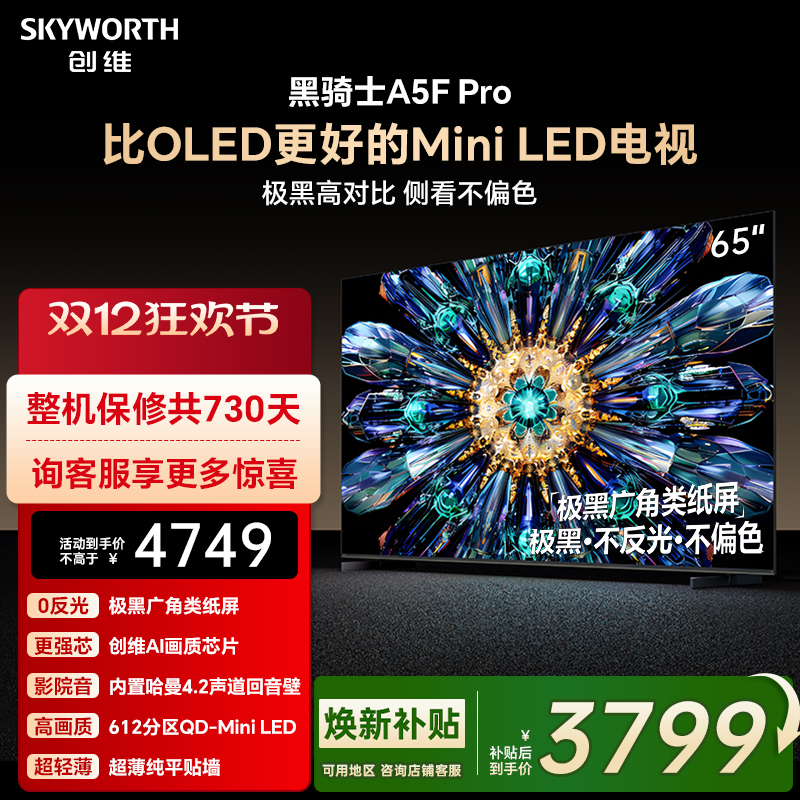 创维电视A5F Pro 65英寸 MiniLED电视机 A5D Pro升级款 换新补贴