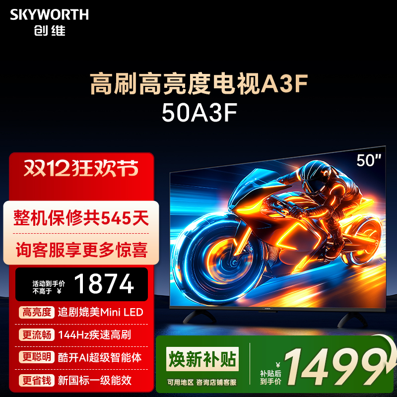 创维电视50A3F 50英寸 144Hz高刷 AI电视机液晶家用 以旧换新补贴