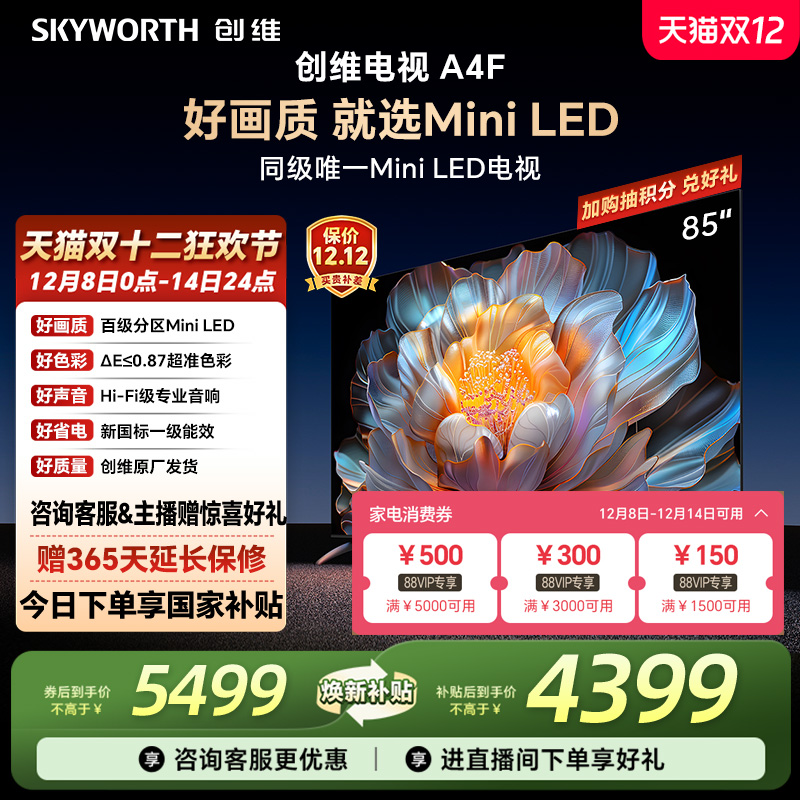 创维电视85A4F 85英寸 MiniLED电视机 官方旗舰店 液晶 以旧换新