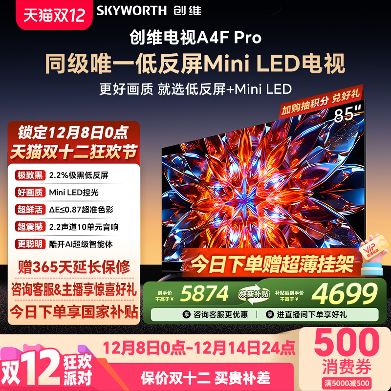 创维电视A5F Pro 85英寸 MiniLED电视机 A5D Pro升级款 换新补贴