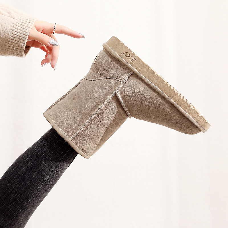 新款皮毛一体雪地靴中筒纯羊毛真皮防滑短筒靴子加厚女靴雪地棉鞋