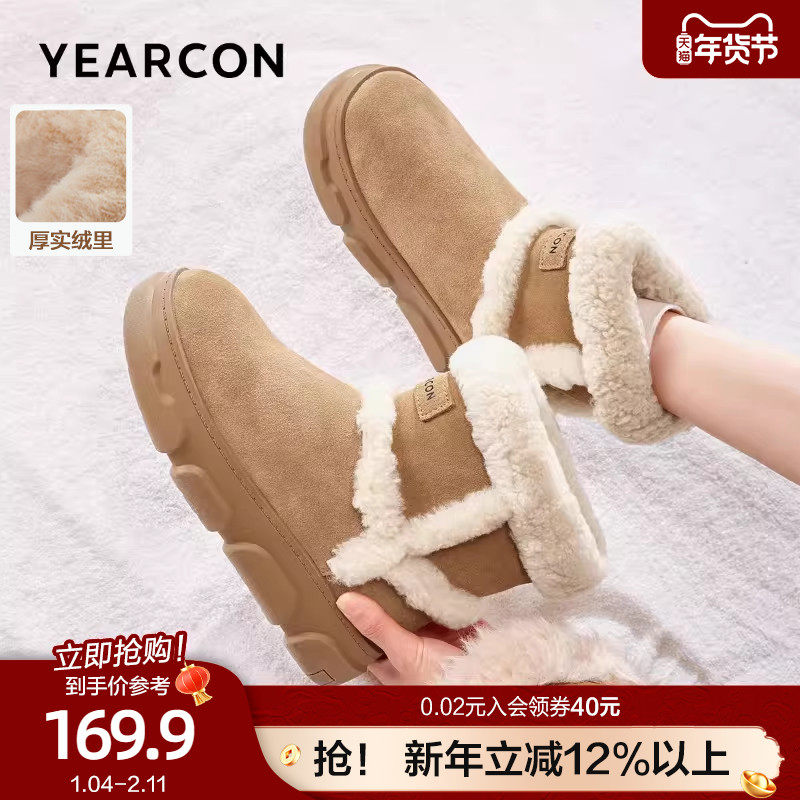 意尔康真皮雪地靴女款2025冬北加绒加厚大棉鞋中筒皮毛一体毛毛鞋