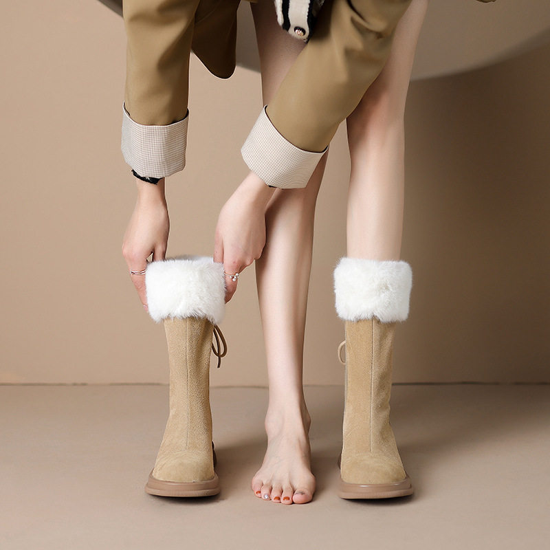 撤柜断码2025冬季新款真皮中筒雪地靴加绒保暖百搭毛靴厚底棉鞋女