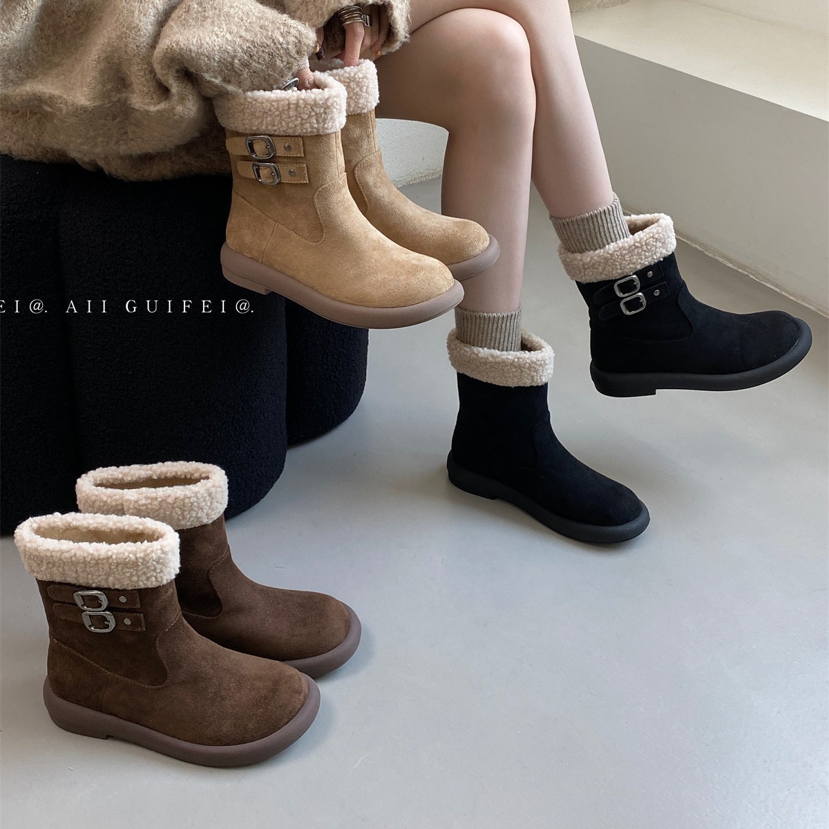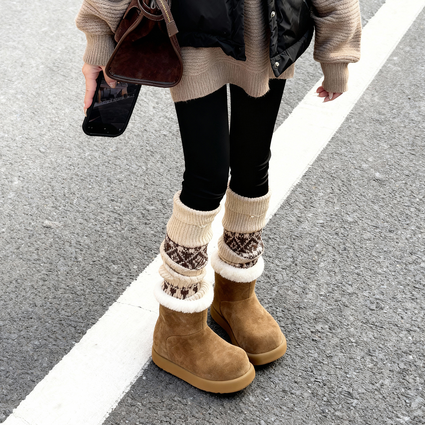厚底短靴女2025秋冬新款复古加绒真皮中筒雪地靴加厚保暖东北棉鞋