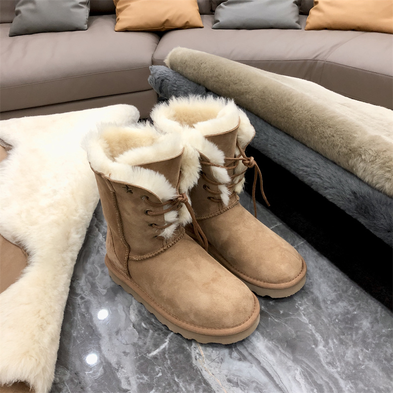 河南桑坡丁大叔羊皮毛一体真皮羊毛原皮原毛女神系带雪地靴女中筒