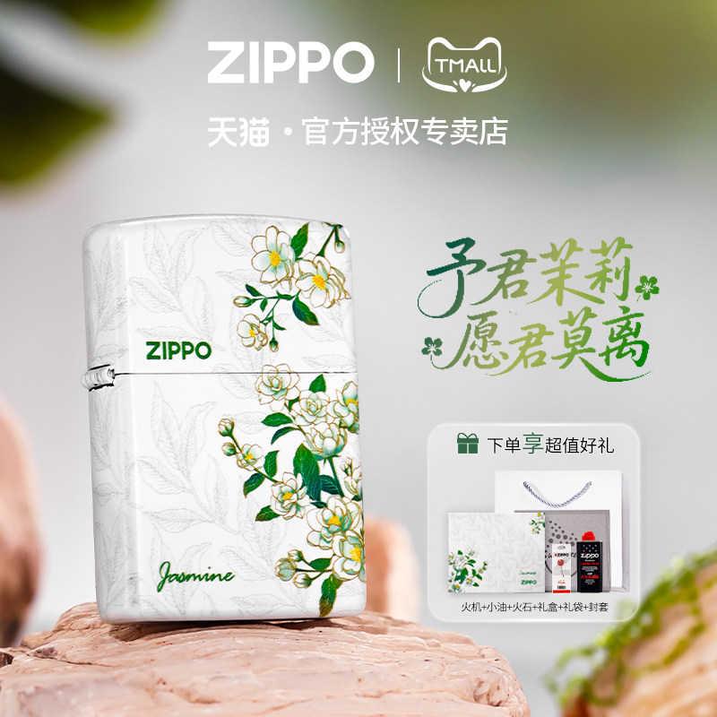 zippo打火机正品 彩印春绘茉莉正版煤油防风火机送男生日礼物女生