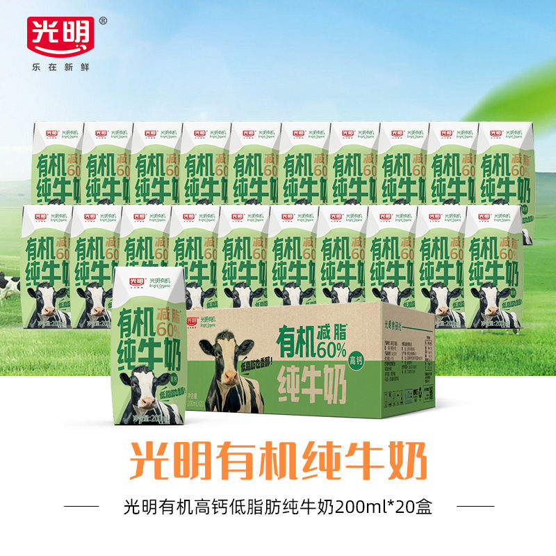 【6月产】光明有机高钙低脂纯牛奶200ml*20早餐营养有机纯奶整箱