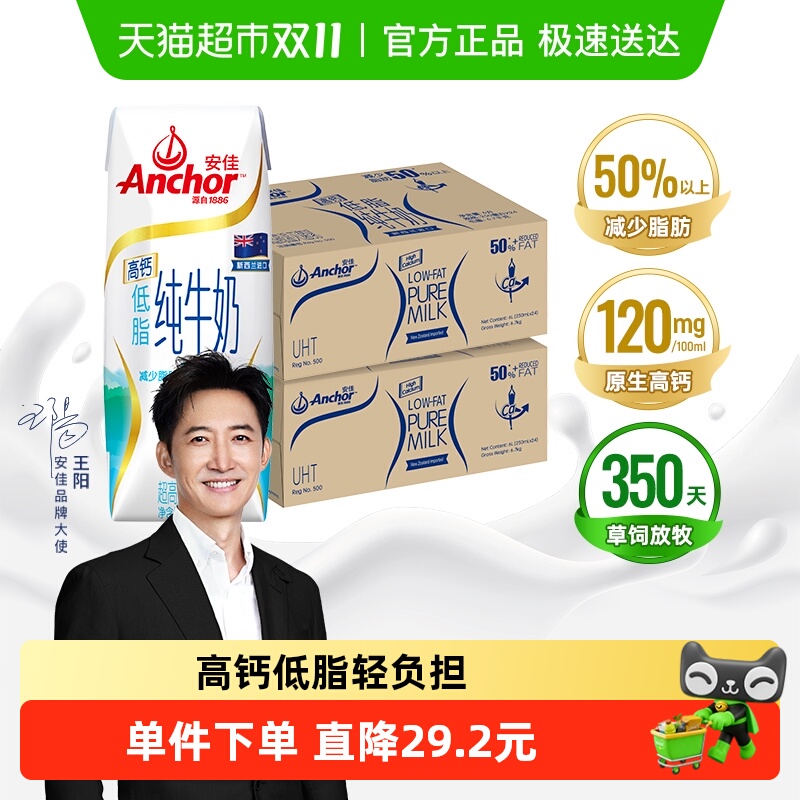 新品安佳Anchor高钙低脂纯牛奶新西兰原装进口牛奶250ml24整箱装