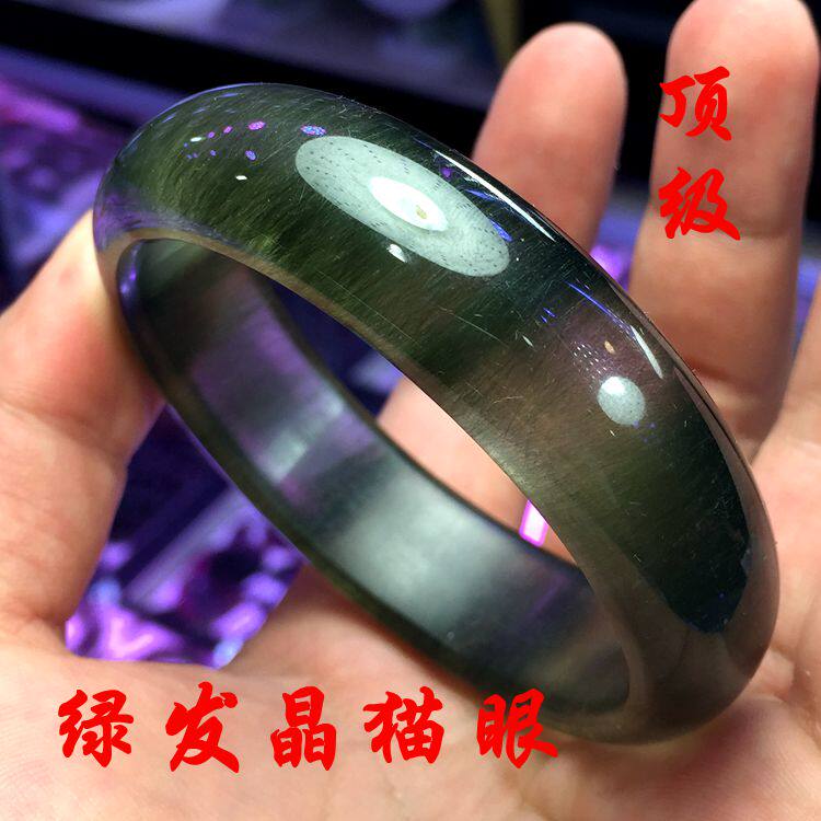 开柜货 顺发猫眼 发晶手镯 纯天然女款 绿发晶手镯 天然正品59