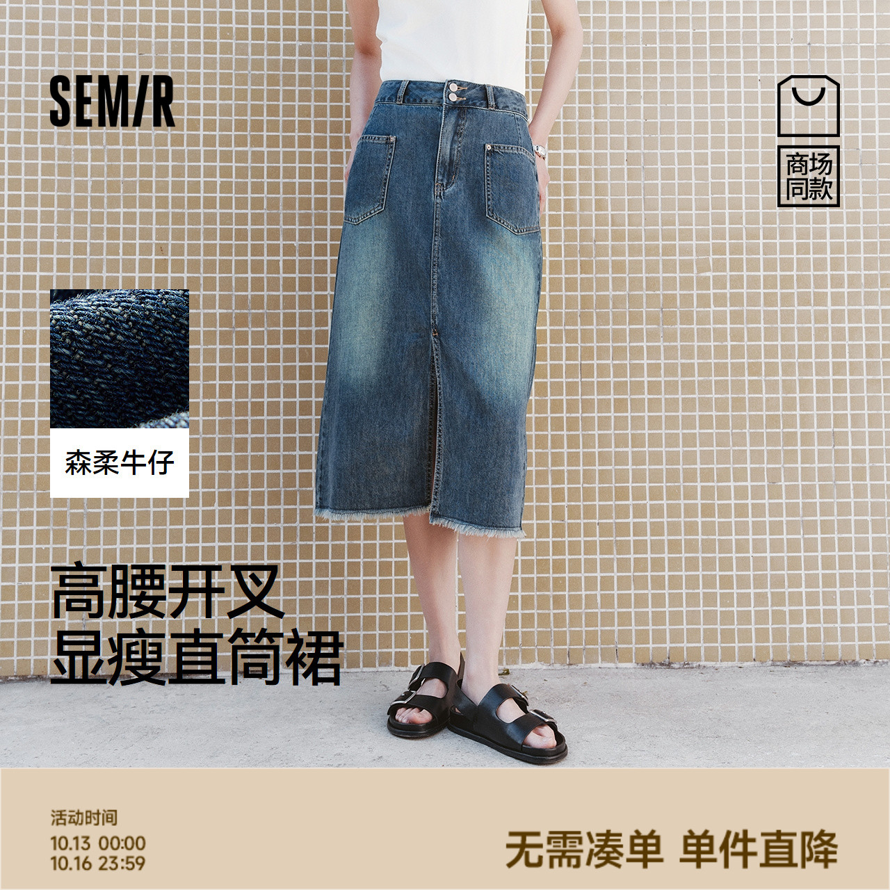 森柔牛仔|商场同款森马牛仔半身裙女高腰2025夏季新款开叉直筒裙