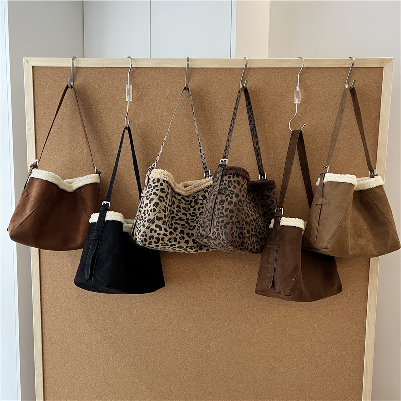 羊羔毛毛斜挎包女韩版2023新款冬季毛绒手提手拎水桶小众轻奢女包