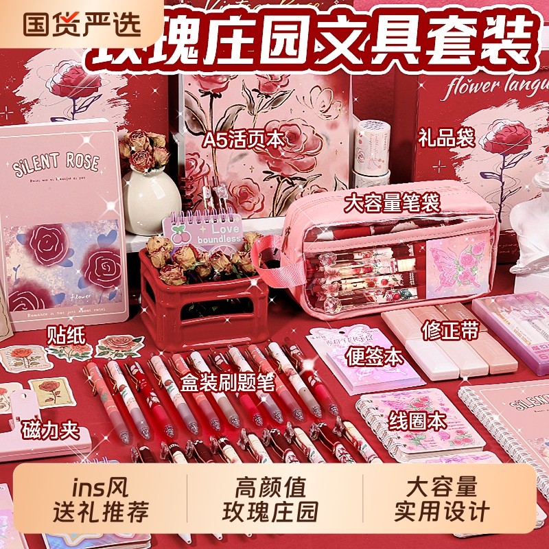 玫瑰庄园文具套装礼盒礼包女孩生日礼物三年级学习用品男孩初中生考试专用小学生实用套装毕业礼物奖励伴手礼