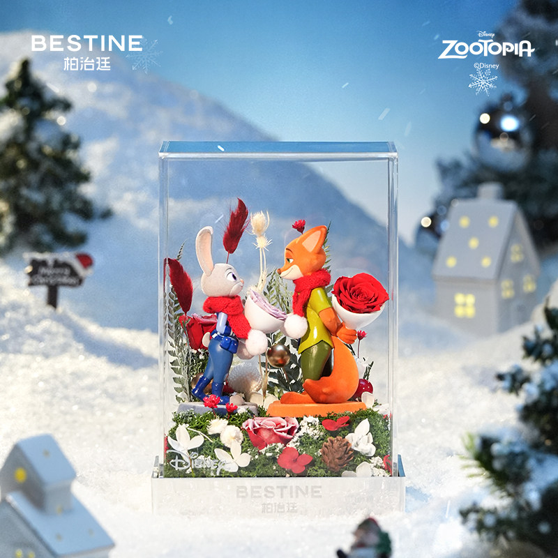 新年礼物柏治廷迪士尼疯狂动物城朱迪尼克永生花玫瑰摆件礼盒生日