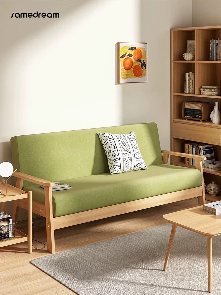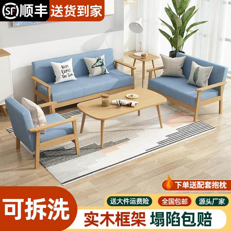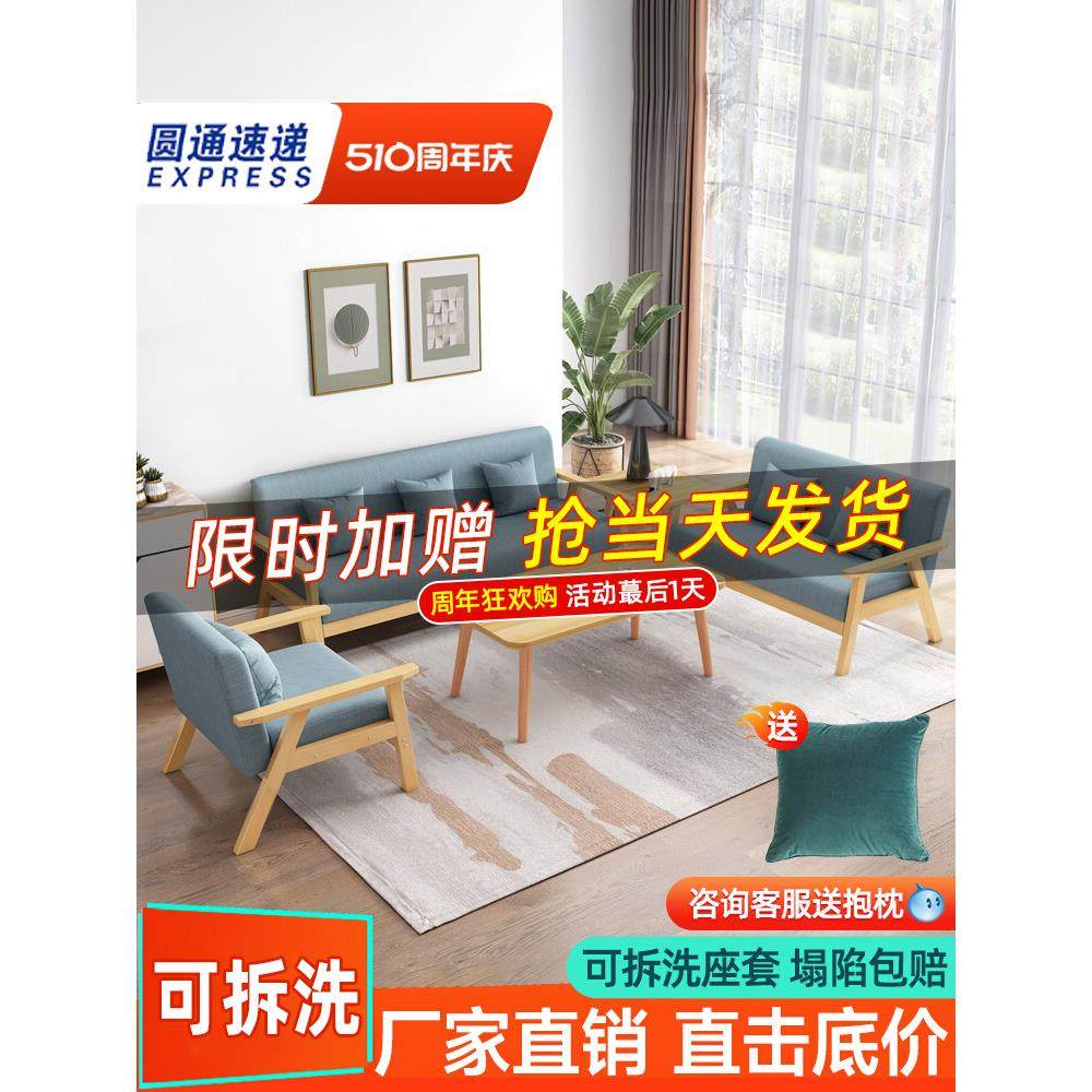 实木沙发客厅简约现代出租房卧室简易双人三人位布艺办公室小沙发