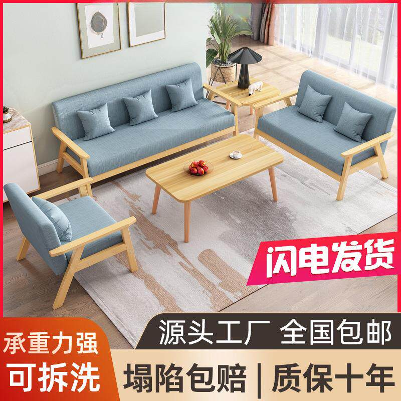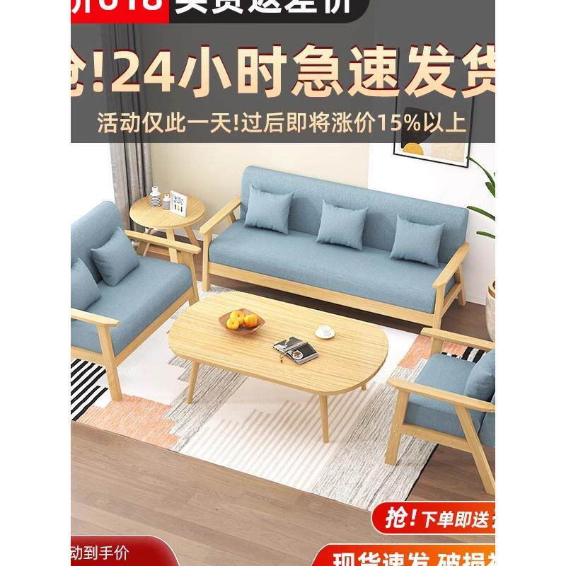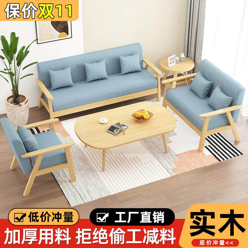 布艺沙发茶几组合卧室出租房新款清漆实木沙发办公室简易双人沙发