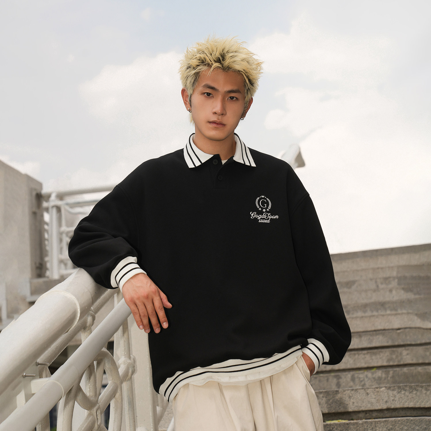 GOGOSOON卫衣男生polo领340g新款春秋美式休闲学院风宽松刺绣上衣