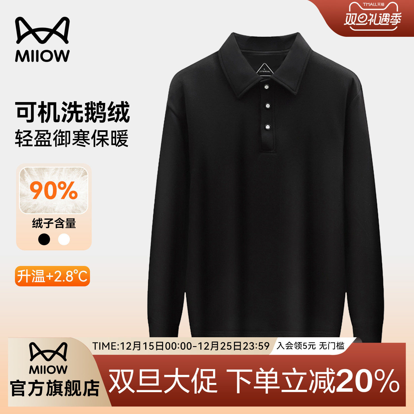 猫人羽绒POLO衫男士秋冬鹅绒长袖t恤保暖内搭小白T半拉链打底衫厚