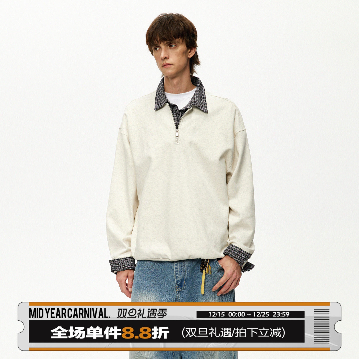 男道美式假两件POLO衫卫衣男2025秋季半拉链学院风无帽宽松上衣