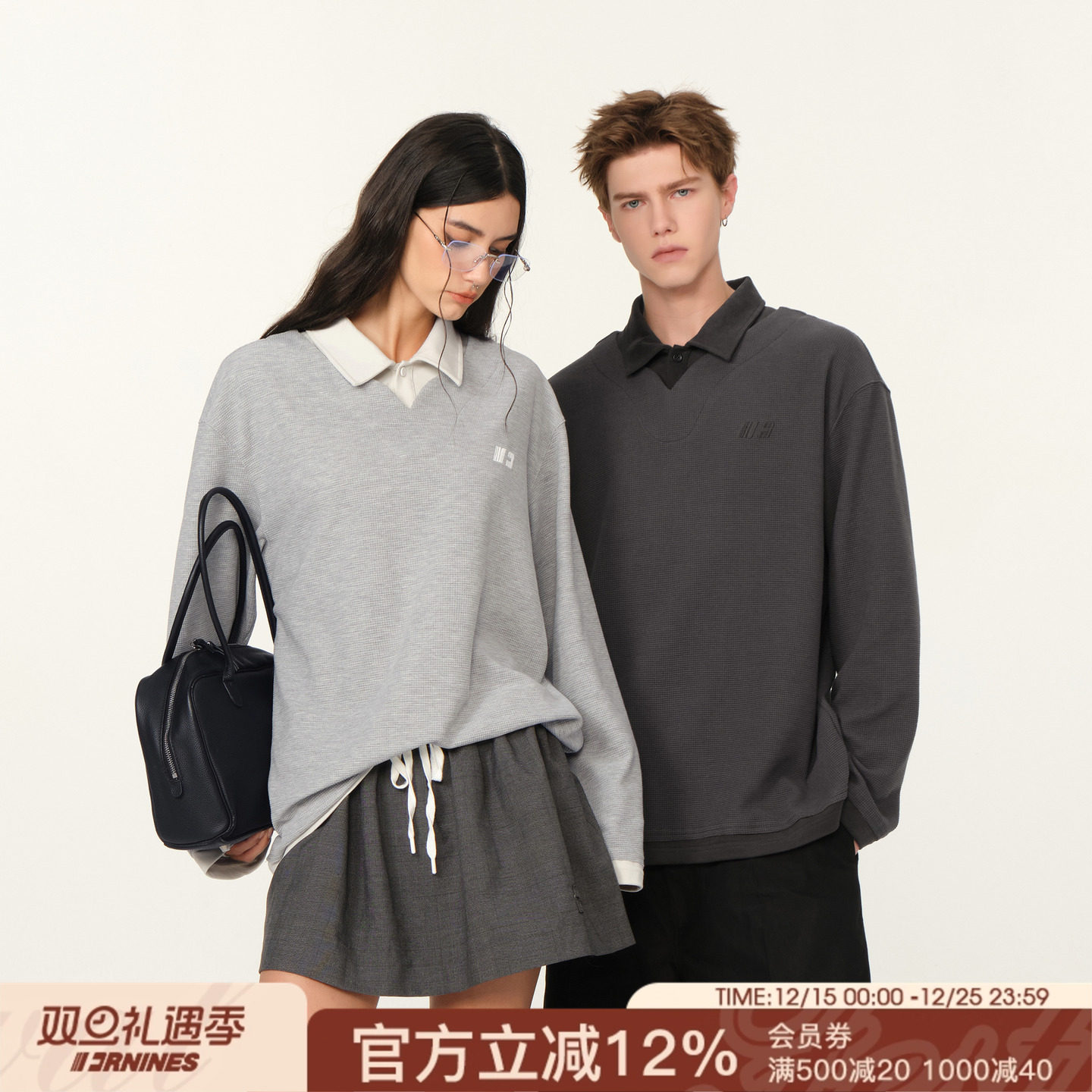 FORNINES假两件polo衫华夫格卫衣男女潮牌春秋款翻领通勤长袖上衣