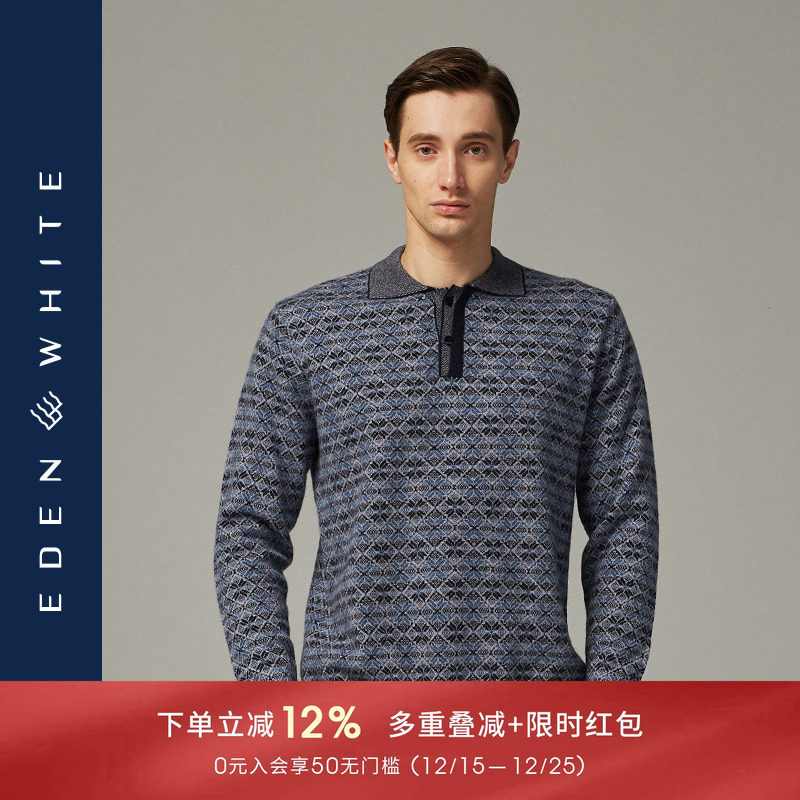 圣雪绒22秋冬新款男POLO领提花羊绒衫加厚长袖休闲套头针织衫