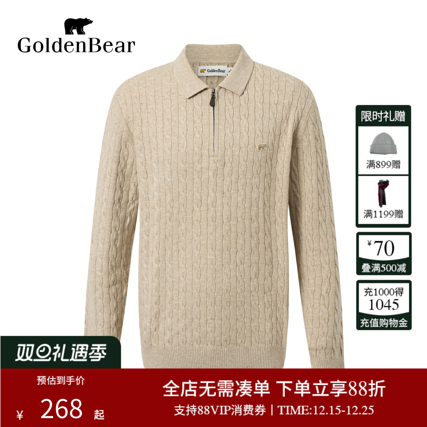 【秋季新品】GOLDEN BEAR/金熊 新款男装上衣Polo领绞花针织衫