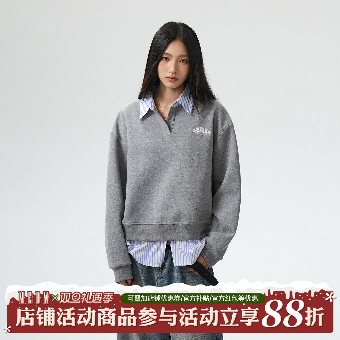 MEDM 撞色领休闲长袖polo毛衣美式通勤字母刺绣男女翻领针织衫秋