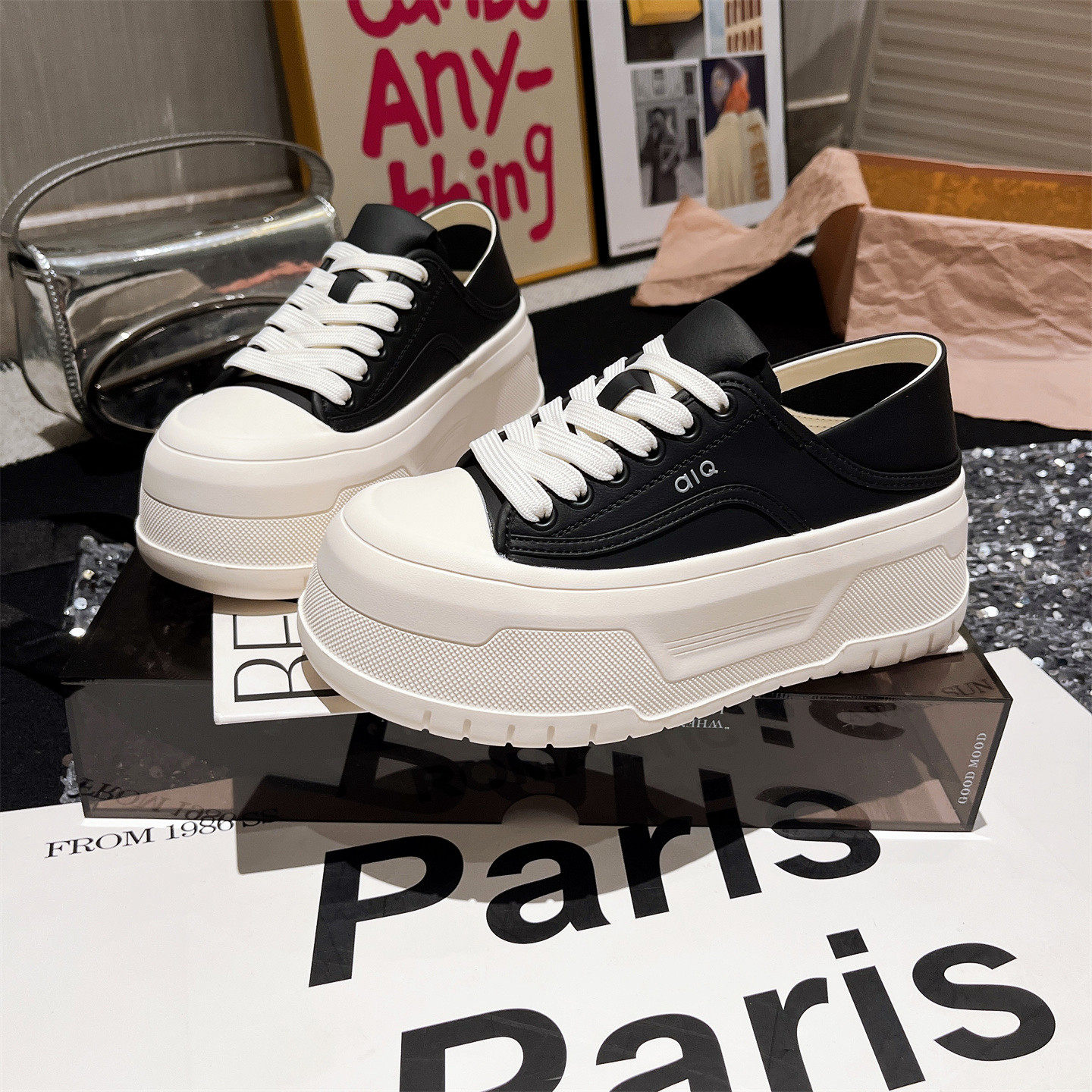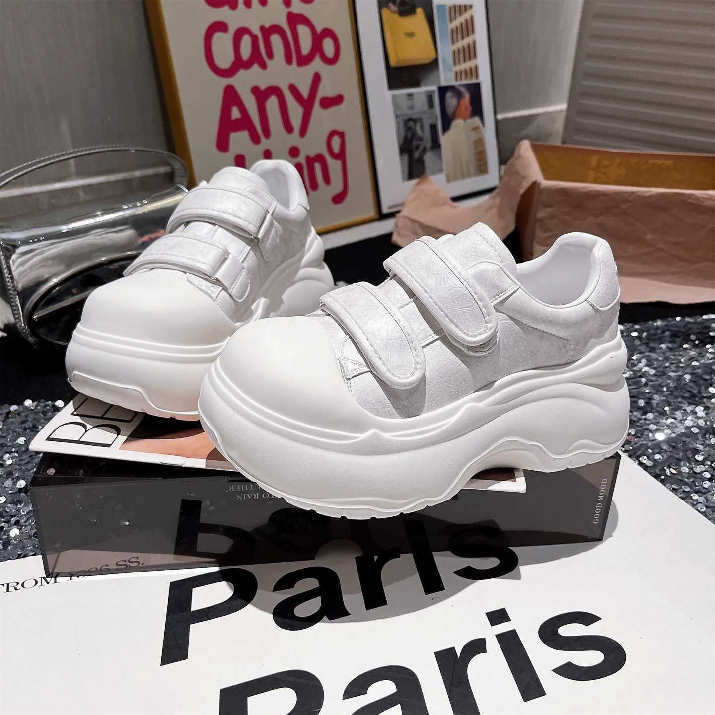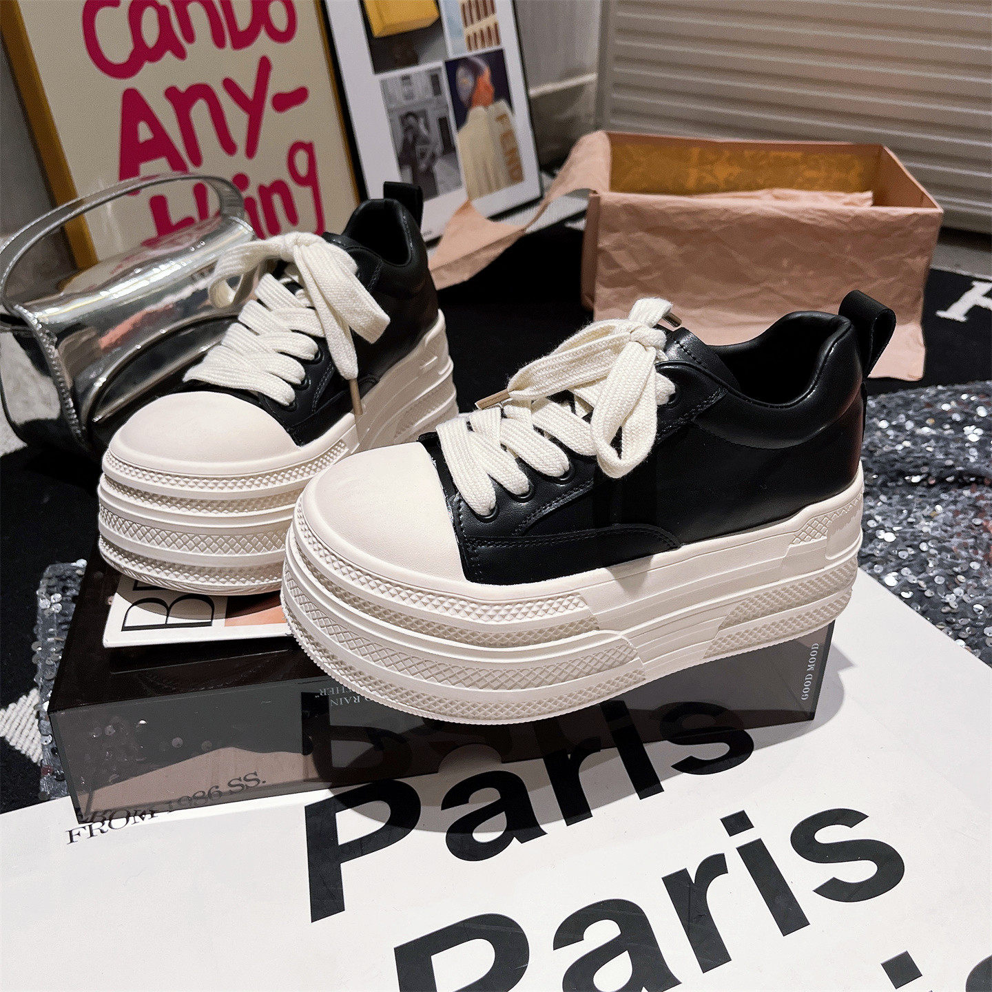 韩版ins超火贝壳头溶解鞋熊猫鞋小白鞋厚底松糕休闲鞋小个子女鞋
