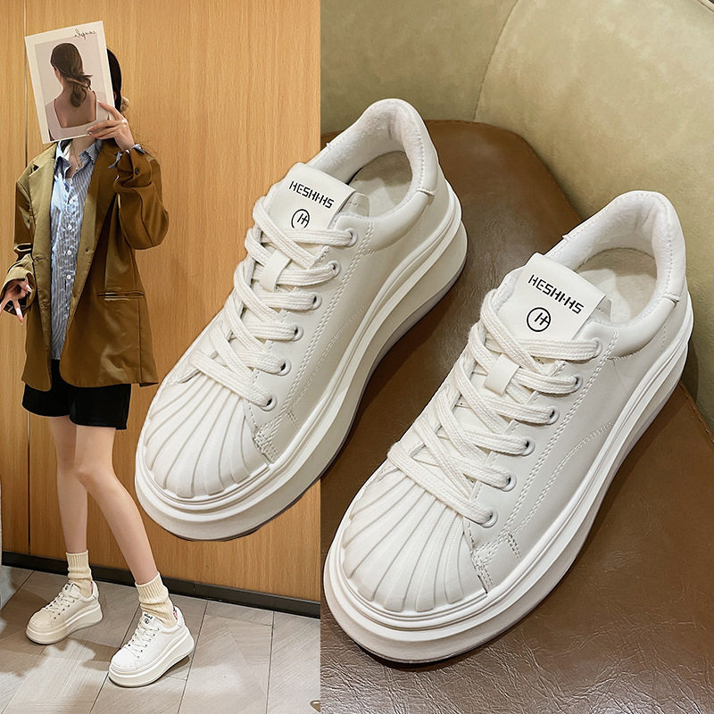 撤柜处理2024春韩版贝壳头小白鞋百搭厚底轻便饼干鞋运动板鞋女鞋