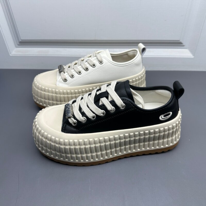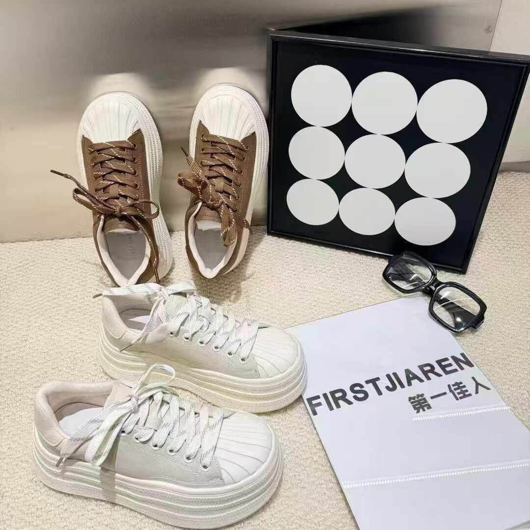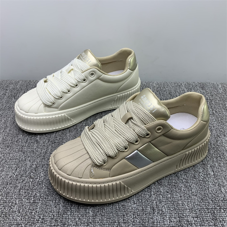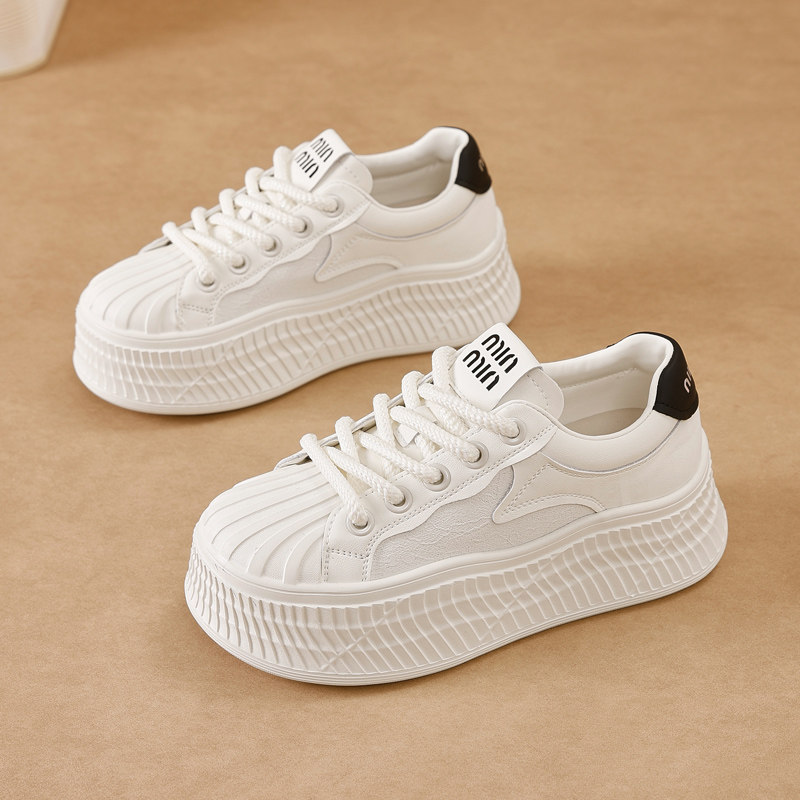 2026春季韩版ins贝壳头系带休闲鞋板鞋小白鞋饼干鞋厚底松糕女鞋