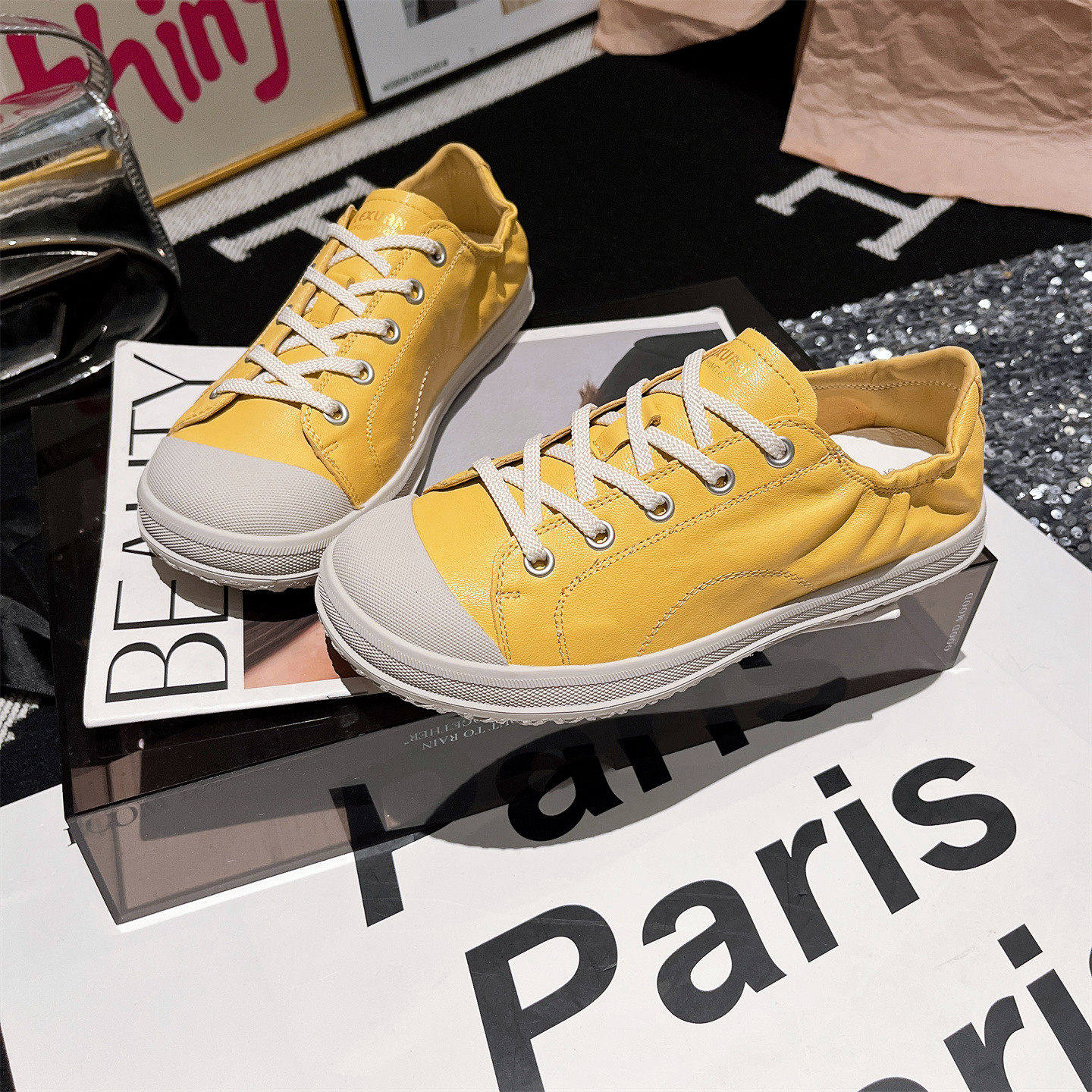 2026春季韩版贝壳头系带擦色小脏鞋休闲板鞋德训鞋平底鞋软皮女鞋
