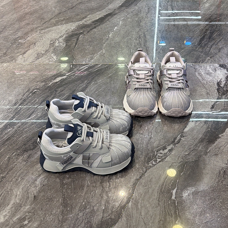 时髦百搭~韩版贝壳头灰色老爹鞋女2026春新款厚底增高休闲运动鞋