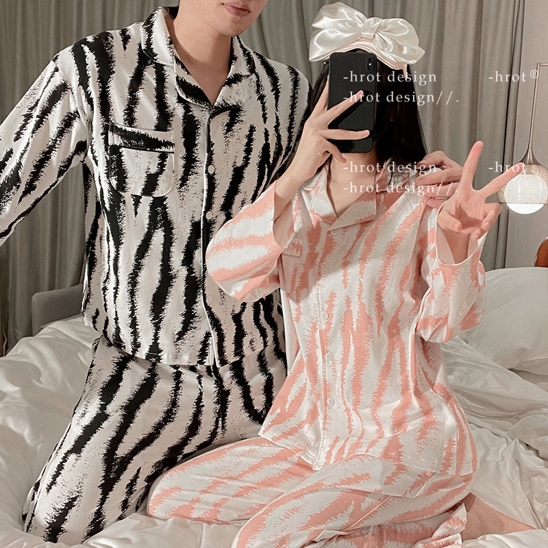 不羁斑马*性感韩版黑白条纹情侣纯棉套装长袖可外穿家居服睡衣女